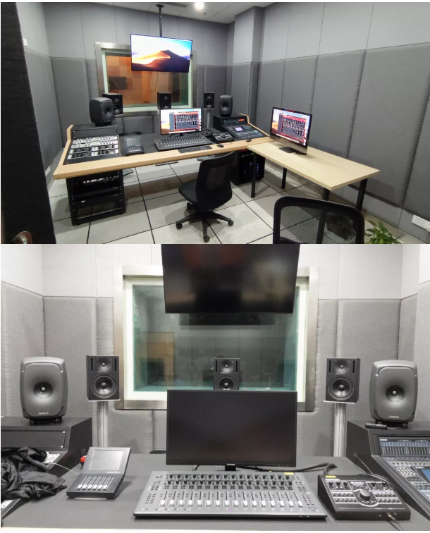 本項目包含了兩間錄音棚(簡稱為棚1與棚2),其中棚1為5.1.4的監聽配置,支持杜比全景聲制作;棚2為5.1的監聽配置。