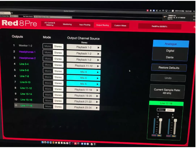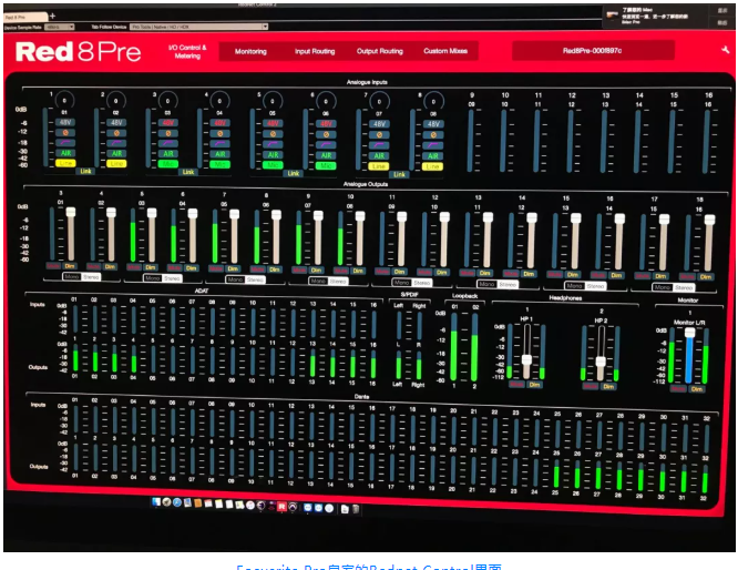 Focusrite Red 8PRE的接口類型豐富(共64進64出),在系統中這一優勢發揮得淋漓盡致: