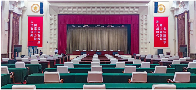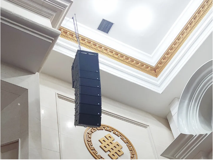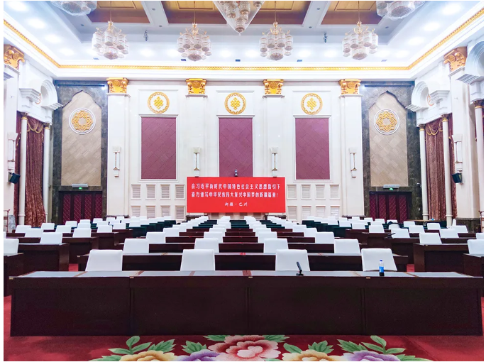 巴音郭楞賓館座落于南疆中心城市庫爾勒市最繁華的人民東路10號,是國家五葉級綠色飯店。賓館占地面積84畝,綠化面積占47%,素有“都市森林”的美譽。巴音郭楞賓館以獨具地方民族特色的熱忱服務接待過三十余位黨和國家領導人及國際政要。其多功能廳選用了“RF”VK線陣列揚聲器系統(tǒng)。