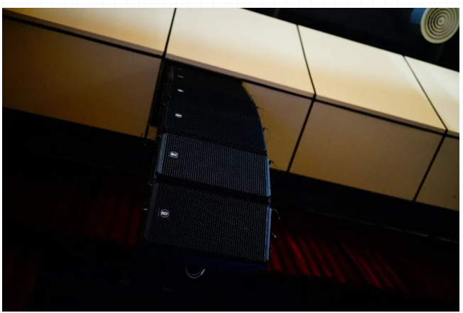整個(gè)禮堂擴(kuò)聲系統(tǒng)采用意大利RCF原裝進(jìn)口音響,左右主擴(kuò)聲為具有遠(yuǎn)程網(wǎng)絡(luò)控制技術(shù)的HDL系列有源線陣音箱各6只,中間采用中置有源線陣音箱4只,超低音采用SUB雙18寸有源音箱2只 ,臺(tái)唇使用有源音箱,整個(gè)禮堂補(bǔ)聲采用了16只輔助環(huán)繞音箱,保證了所有座位都能聽到準(zhǔn)確而清晰的聲音。