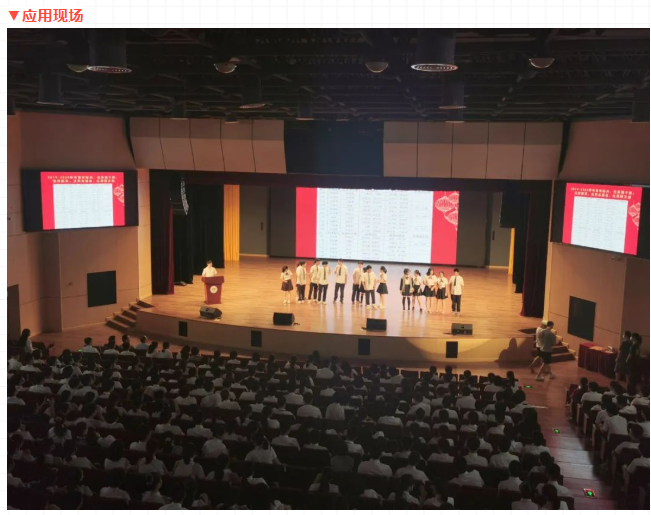 校區(qū)大禮堂是學(xué)校舉行會(huì)議、學(xué)術(shù)報(bào)告、培訓(xùn)活動(dòng)以及慶典演出等的綜合用途廳堂。為滿足使用要求,在禮堂配置了包括如下系統(tǒng):擴(kuò)聲系統(tǒng)、燈光系統(tǒng)、視頻系統(tǒng)、錄直播系統(tǒng)以及會(huì)議中控系統(tǒng)等。項(xiàng)目自投入使用以來,承接了多場活動(dòng),包括:家長會(huì)、高考動(dòng)員大會(huì)、教師節(jié)演出等。