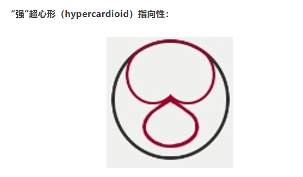 顧名思義這是更強的超心型指向,同樣主要從正面捕捉聲音,比較多用在室內樂的多軌錄音中,減少來自附近其他樂器的聲音。
