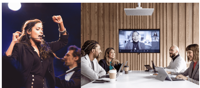 對于會議室和報告廳,鵝頸式或界面式麥克風通常是理想的解決方案,因為它們可以很容易地放置在桌子上/桌子里,目前最新技術的天花陣列麥克風或懸掛式麥克風也可以提供很好的遠程視頻會議拾音解決方案。