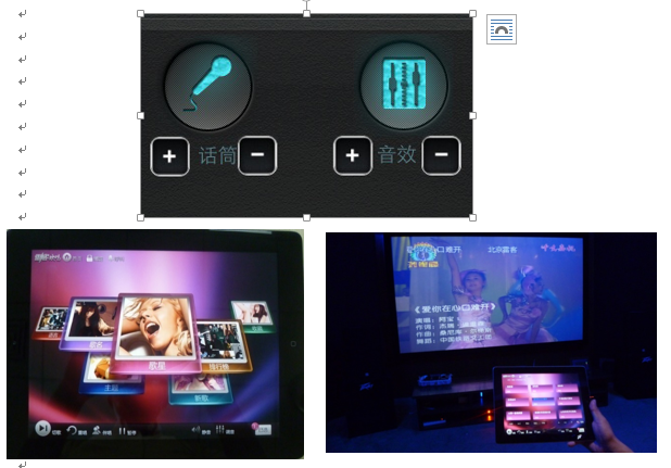 您通過IPAD可以控制控制點(diǎn)歌、控制話筒及效果音量
