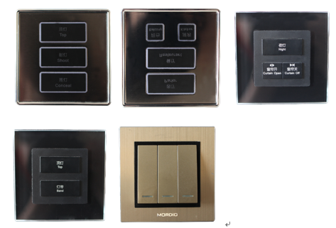 2)特別設(shè)計(jì)的精美的水晶觸控盒(標(biāo)準(zhǔn)86盒方式),甚至可以讓您不需要任何控制屏,您可以像操作普通家用開關(guān)一樣的操作它們