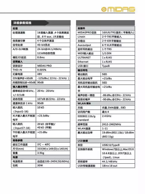 · 內(nèi)置16個Midas經(jīng)典話放· 2通道線路輸入