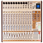 16路小型調音臺,10路麥克風/4組立體聲輸入,可用PC和MAC電腦連接的立體聲USB音頻接口 (24-bit, 48 KHz),內置SD卡錄播及2.4G藍牙連接功能,4編組,可選機架安裝組件(另購)。四個4段EQ立體聲通道(兩個帶有XLR輸入),3段EQ(單聲道),32/40位DFX處理器,處理器有16個程序,每個程序都有一個用戶可調參數,單聲道75HZ低切濾波器,4個立體聲AUX返回,效果可監視,具有INSERT和DIRECT OUT輸出,20級立體電平表。