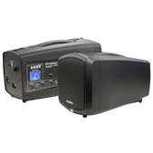 產品特點:超小型多合一內置電池的便攜式專業音響系統 50 W D類數字功放 抗沖擊高分子聚合物外殼 5’全頻單元 1/4" TRS和迷你立體聲輸入 USB 設備可錄制和播放 內置先進的自動掃頻無線話筒系統,可支持有線或無線話筒連接 迷你的雙通道輸出可外接系統 平滑的頻率響應: 50Hz 到18kHz 以80% 負荷可運行多至10個小時 手提把手方便系統流動使用 內置警報與廣播功能 可支持有線或無線話筒連接
