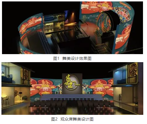 主會(huì)場(chǎng)演播廳舞美設(shè)計(jì)主要通過大面積P3 LED大屏圍合(圖1),觀眾席兩側(cè)是“客廳”“書房”的概念,分上下兩層,如同家庭的房間(圖2);舞臺(tái)以及觀眾席裝飾了春節(jié)傳統(tǒng)的元素。觀眾席后方大屏背景墻顯示的是晚會(huì)主題LED。