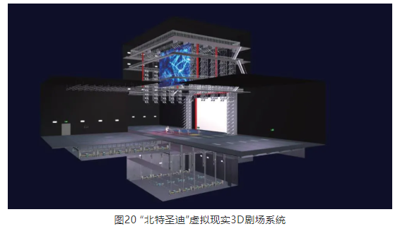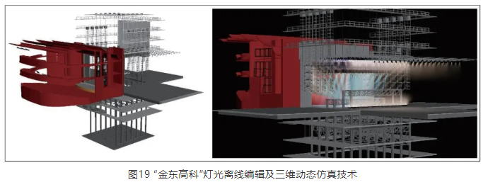 三維動態仿真技術也為終端用戶提供了強大的模擬設計和遠程創作工具。金東高科的燈光離線編輯及三維動態仿真技術(見圖19),從實際演出需求出發,能夠高效配合演出團隊創意和劇場工藝需求進行藝術呈現。配合先進的硬件設備,建筑三維仿真模擬、燈光離線編輯、音視頻效果優化、BIM綜合分析、VR虛擬互動等專業技術,可實現非現場一比一效果演示。為設計師的遠程設計和離線編程提供更加直觀便利的工具。