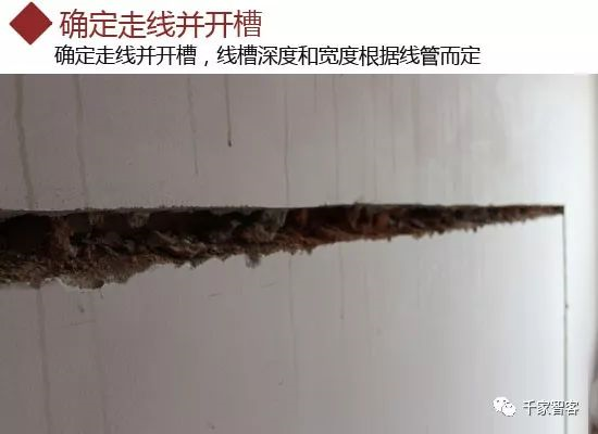 根據(jù)弱電線的多少確定線管的數(shù)量,進而確定線槽的寬度;線槽的深度一般比線管直徑多5mm左右。用切割機沿著彈好的墨線在墻地面上切出線槽,線槽需要橫平豎直,大小均勻。