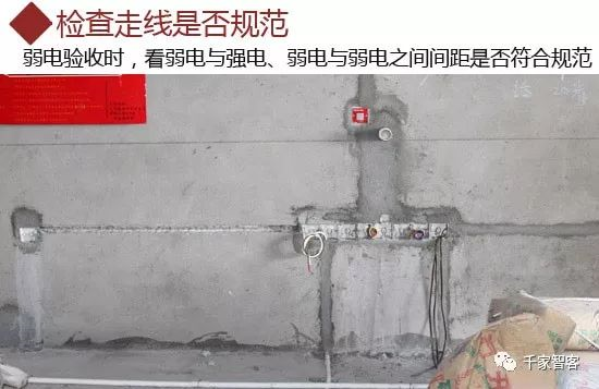 前面已經(jīng)提過,弱電對電波非常敏感,抗干擾能力差,所以光靠護套線管保護還不能完全削減其與鄰近電波的反應(yīng)。所以在鋪設(shè)電路時,弱電與強電、弱電與弱電之間如果水平間距過小,很容易造成日后信號互相干擾。驗收的時候注意檢查線管距離是否符合規(guī)定。