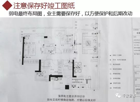 弱電驗收的過程中,如果一些線路沒有標(biāo)記用途的,可以要求工人給標(biāo)記上。同時驗收完成之后,為防止施工過程中的對原設(shè)計圖紙進行了改動,需要要求設(shè)計師重新畫出最終設(shè)計布線圖,業(yè)主注意保存好,以便今后的保護與維修。