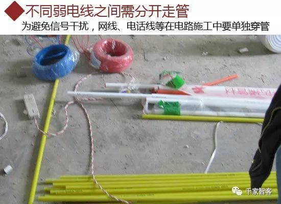 為避免信號干擾,網(wǎng)線、電話線、有線電視線等弱電在電路施工中要單獨穿管,不可穿在同一管內(nèi)。