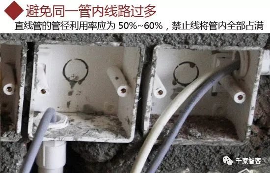 敷設(shè)時應(yīng)視管內(nèi)所穿導(dǎo)線數(shù)量的多少而變化,同一管內(nèi),不宜超過四根,禁止導(dǎo)線將管內(nèi)空間全部占滿。直線管的管徑利用率應(yīng)為50%~60%,彎管的管徑利用率應(yīng)為40%~50%。