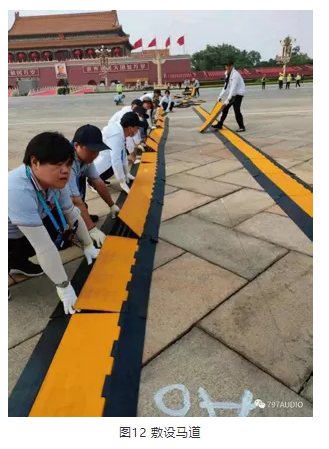 因此,為切實加強慶祝活動天安門廣場電力、信號等線纜規(guī)范管理,確保安全有序運行,根據(jù)市調(diào)度運營中心統(tǒng)一部署,音響保障指揮部對各指揮部報送的廣場區(qū)域流動線纜、馬道等設(shè)施的信息進行了歸納、整理,結(jié)合現(xiàn)場環(huán)境布置進行了統(tǒng)一設(shè)計。設(shè)計時,除了滿足各指揮部提出的需求之外,還按“強弱電分開”“不露明線”“便于敷設(shè)及撤除”“減少跨越”“就近出線”等原則,對廣場各類信號、電力線纜進行了統(tǒng)一設(shè)計和規(guī)劃,對線纜的走向、標識、敷設(shè)及拆除方案做了詳細的規(guī)定。
