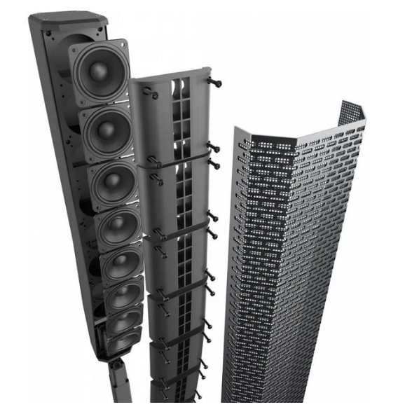 陣列的外箱由耐用的復(fù)合材料制成,并配有符合人體工程學(xué)的鋁制把手。超低音采用15mm木制外箱,里面含有一個(gè)12寸低音單元,采用高效的層流通風(fēng)口設(shè)計(jì)。陣列和超低通過對(duì)稱的鋁桿與內(nèi)部布線和磁吸閂鎖連接。揚(yáng)聲器裝有一個(gè)黑色粉末噴涂的18 gauge標(biāo)號(hào)鋼制網(wǎng)罩作保護(hù)用途,還包含一個(gè)陣列/拉桿運(yùn)輸箱。先進(jìn)的D類放大器可提供高達(dá)1,000W的功率。